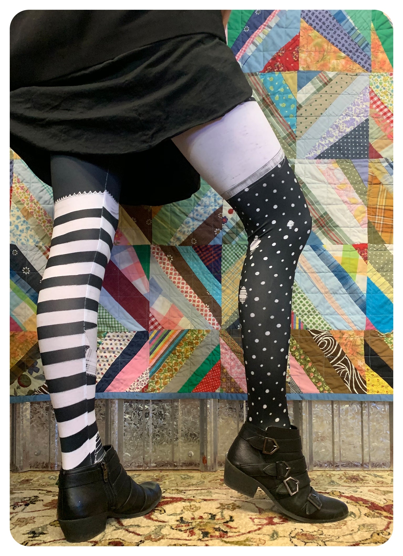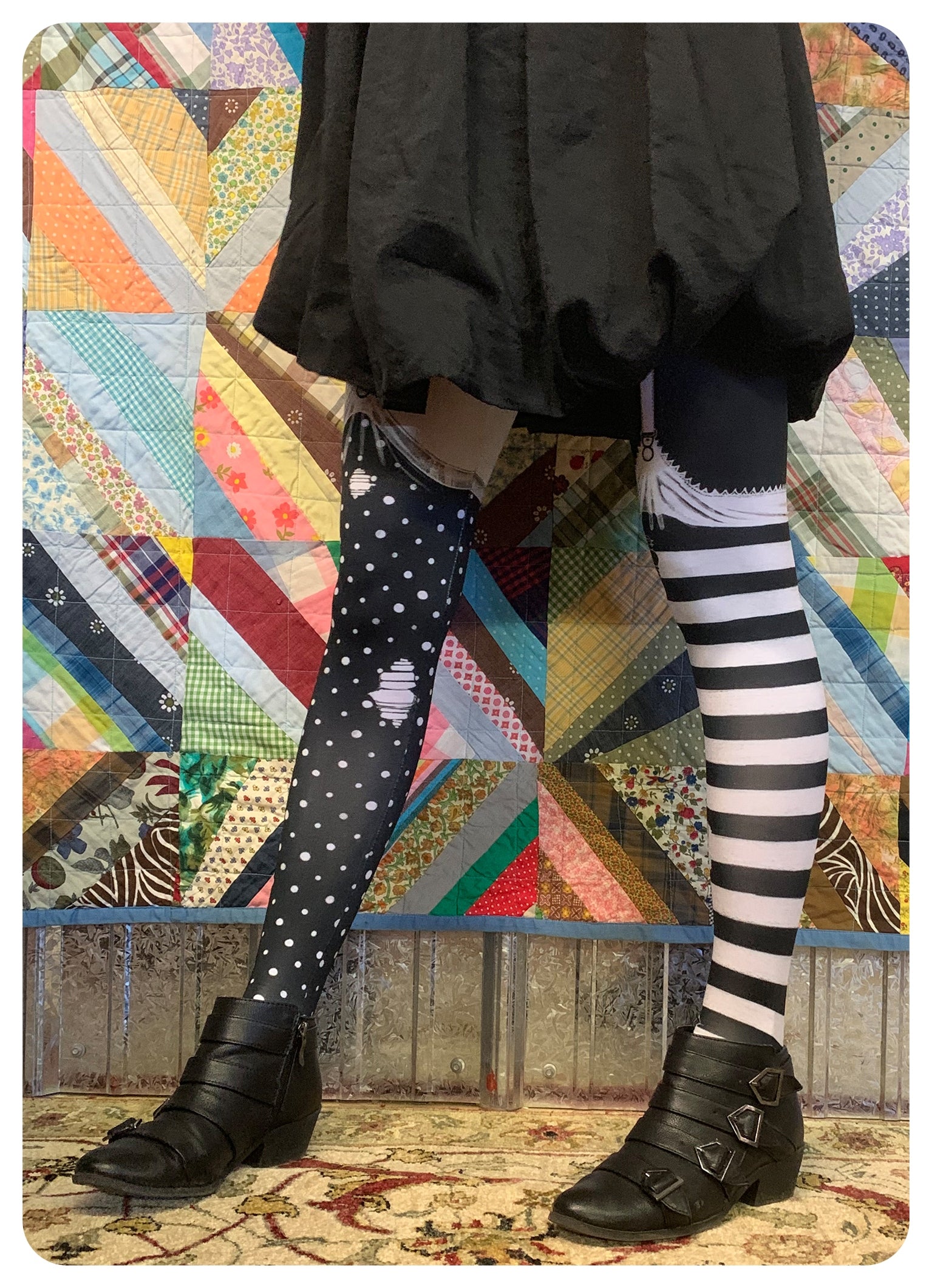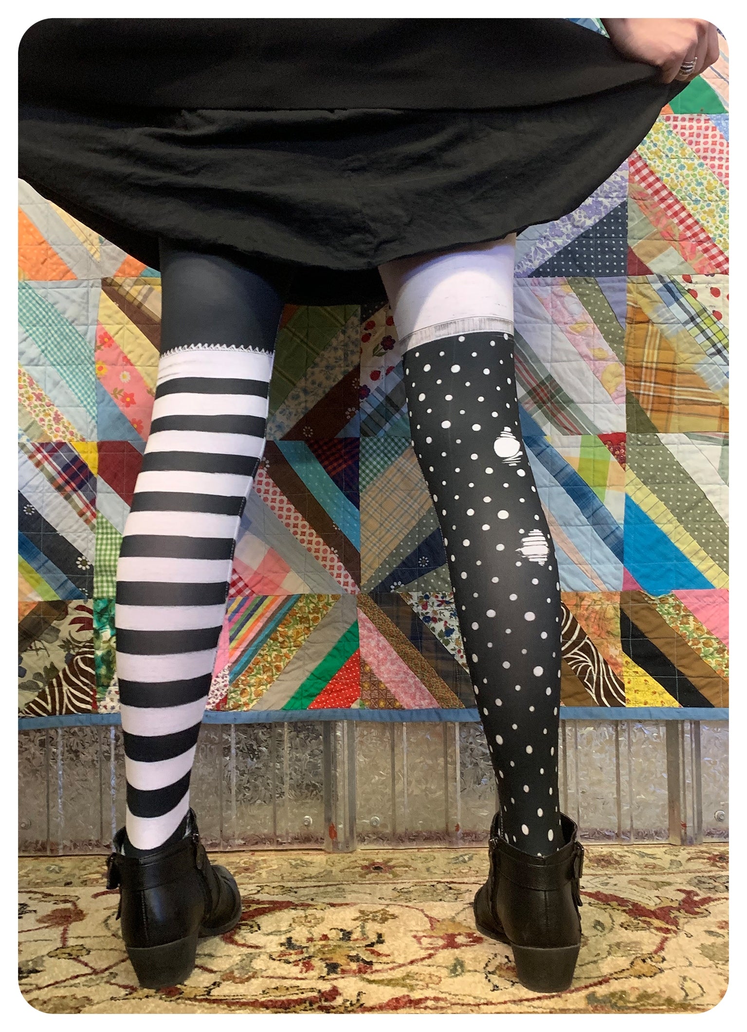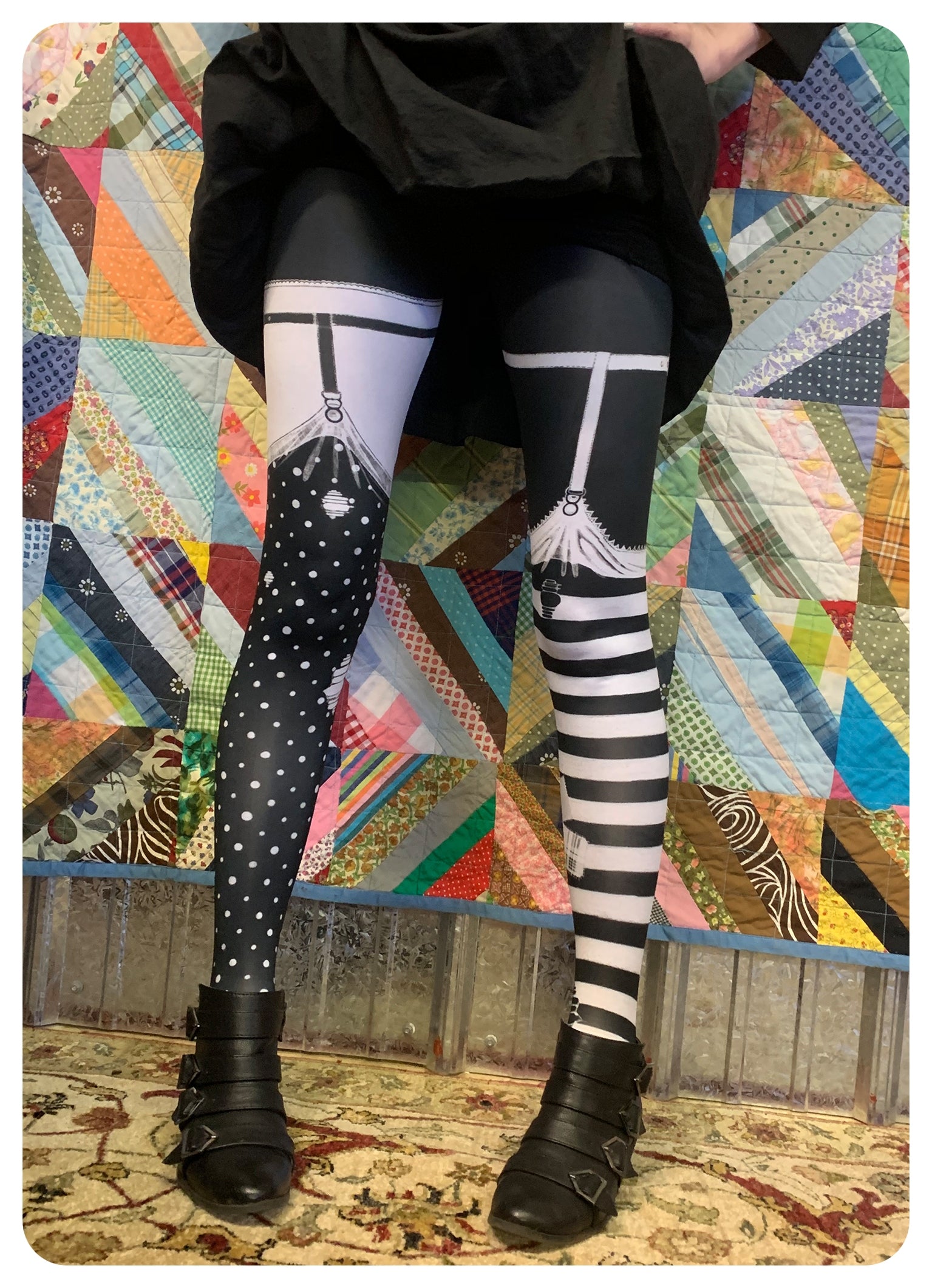 Please machine or hand wash on cold, inside out and air dry as heat harms the fabric. Also, watch out for rough surfaces or sharp objects; nails etc as they can pull out the white fibers in the fabric, damaging the leggings.